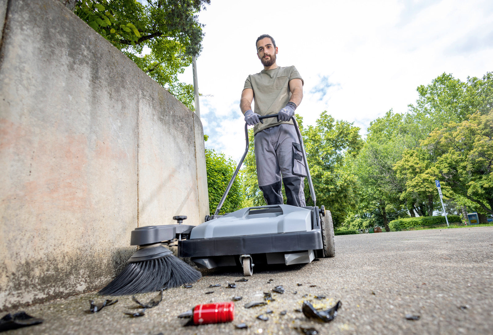 The compact KM 70/15 C Classic manual sweeper is always ready for action to sweep small areas efficiently. It can be used in indoor spaces and outside areas.