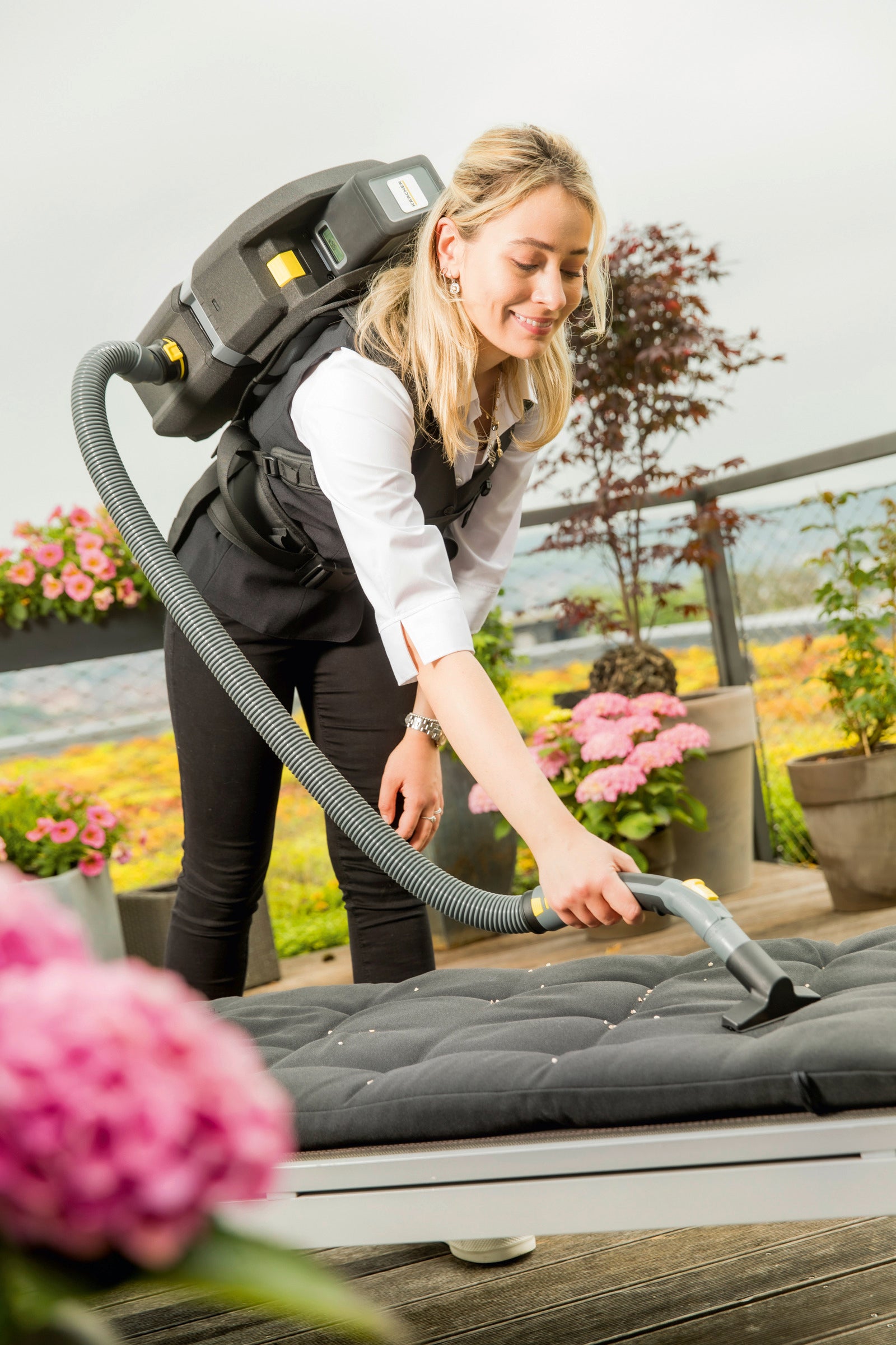 Մեջքին կրելու համար նախատեսված կորպուսի օգտագործումը հարմար է նույնիսկ երկարատև աշխատանք կատարելիս։ Կառավարման վահանակը, որը դրված է գոտկատեղին կապվող գոտու վրա, հնարավորություն է տալիս հեշտությամբ կառավարել այս սարքի բոլոր գործառույթները։ Կլանող փողրակը կարող է տարբեր կերպ միացվել, կախված նրանից, թե օգտագործողն աջլիկ է թե ձախլիկ։